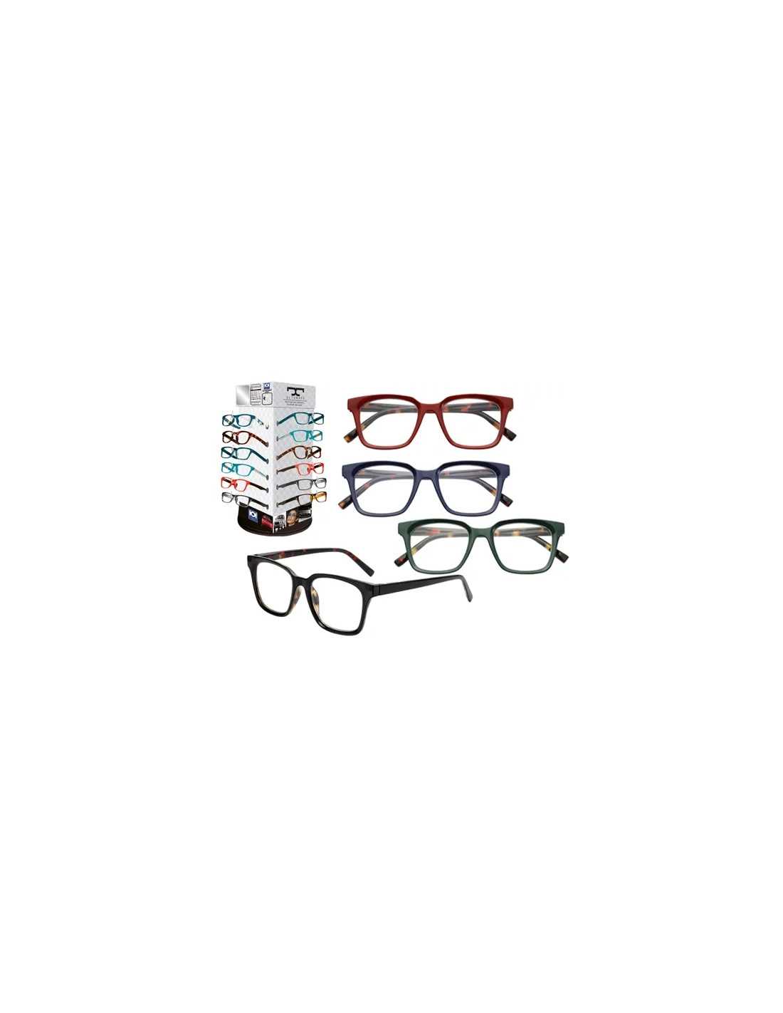 Assortimento di occhiali da lettura De Tomaso, con lenti asferiche ultra sottili e infrangibili. Disponibili in 4 colori esterni e 6 diottrie diverse. Perfetti per una visione chiara e confortevole.