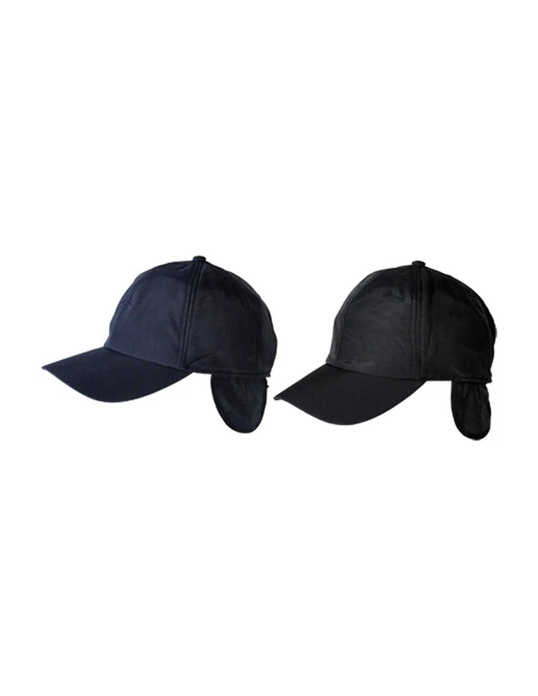 BERRETTO CON VISIERA impermeabile, ideale per proteggere dal sole e dalla pioggia. Con copri orecchi per maggiore comfort. Regolazione della misura in metallo per una vestibilità perfetta. Disponibile in 2 colori: nero e blu navy. Pacchetto da 6 pezzi.