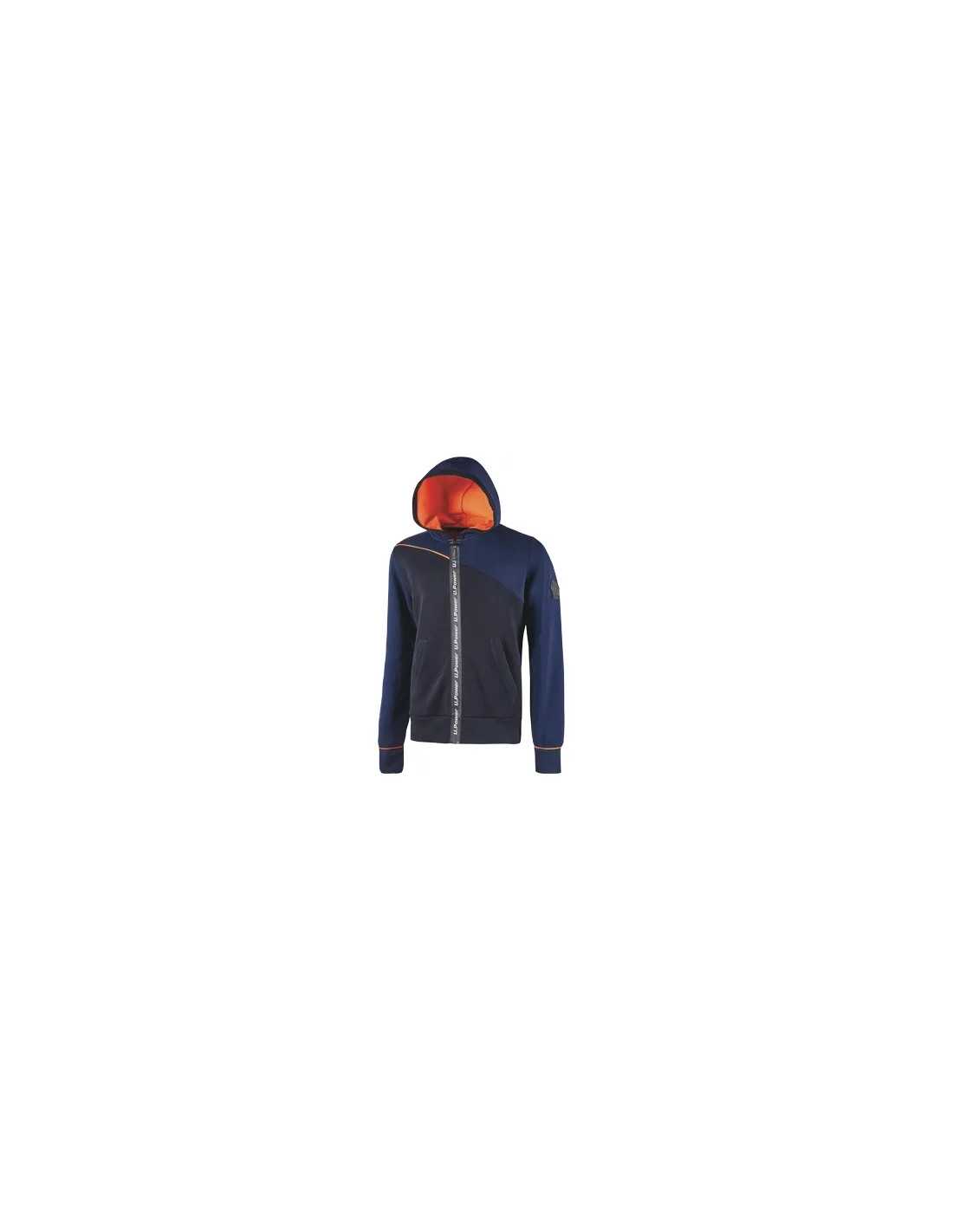 Abbigliamento U-Power Felpe Full Zip Jupiter DB, felpa full in tessuto misto cotone e poliestere, con cappuccio regolabile, chiusura a zip impermeabile e tasche applicate. Dettagli fluo elasticizzati per un look moderno e sportivo.