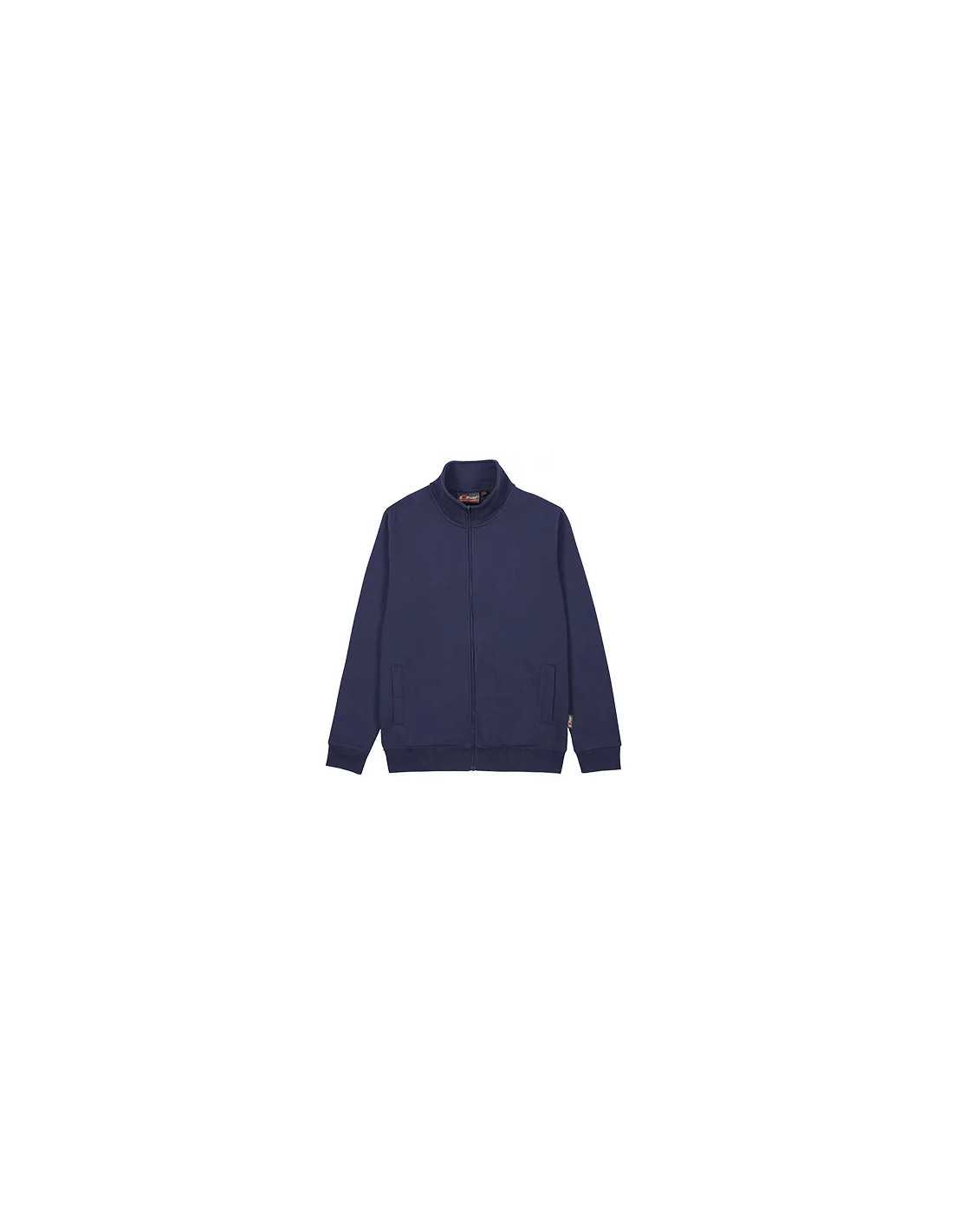 Felpa zip intera garzata in policotone, tessuto morbido adatto ai lavaggi intensivi. Manica a giro, 2 tasche laterali, collo in piedi, polsini e fondo in costina elasticizzata. Colore Deep Blue.