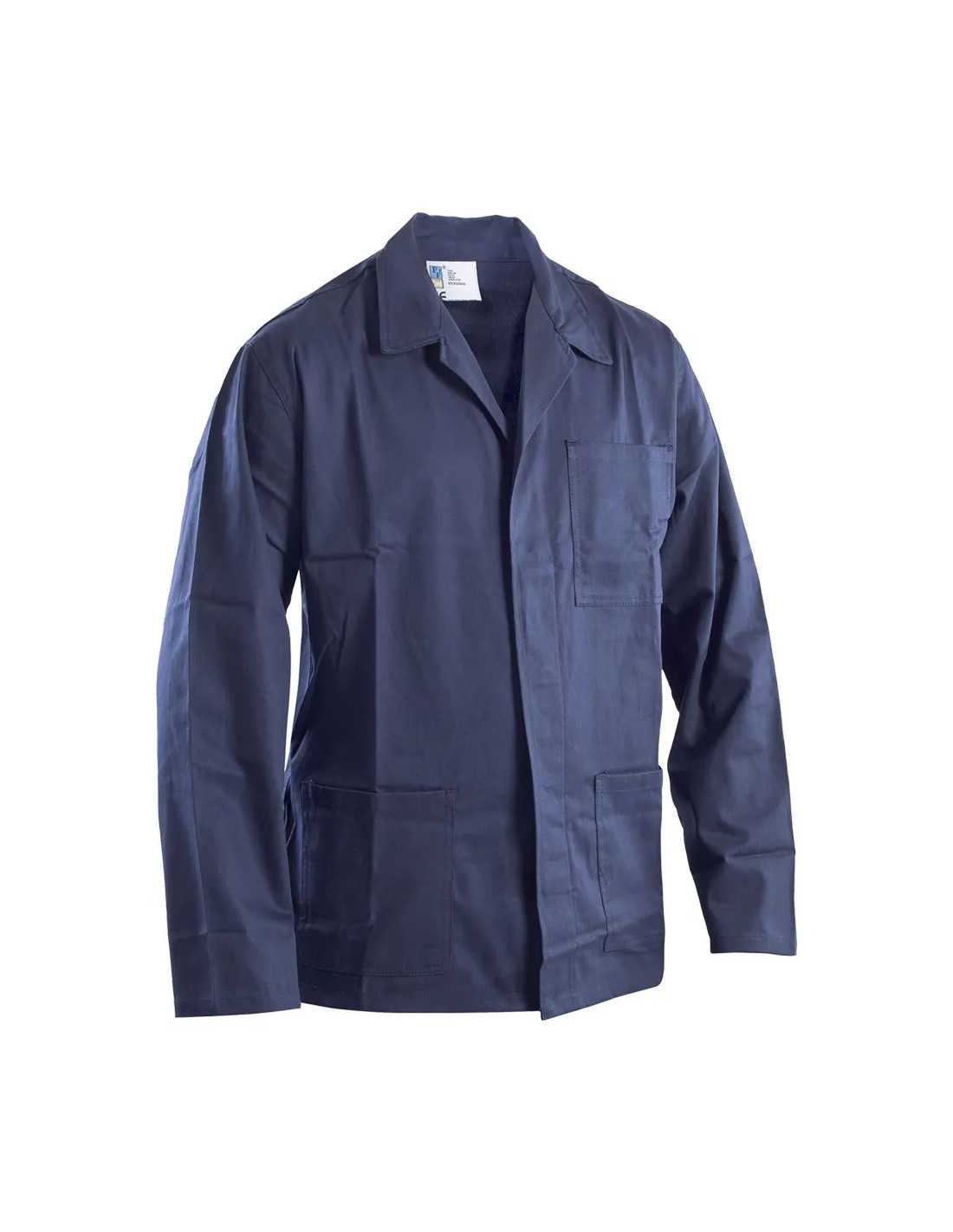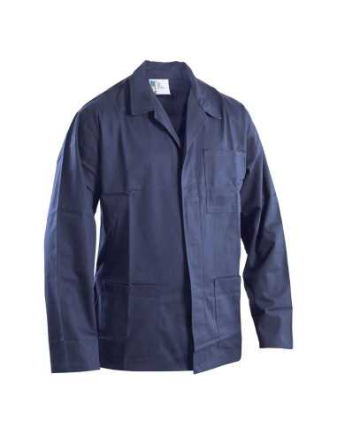 GIACCA DA LAVORO in cotone 100% drill sanforizzato, con chiusura anteriore a bottoni coperti, tasche inferiori e taschino superiore. Colore blu, resistente e comoda per l'uso quotidiano.
