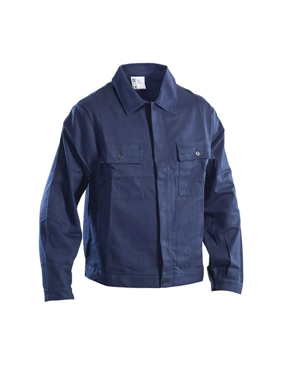 GIUBBINO DA LAVORO taglia 48 in cotone 100% drill massaua sanforizzato, ideale per le tue giornate di lavoro. Con collo a camicia, chiusura con bottoni coperti e pratiche tasche al petto, è resistente e comodo. Color blu, 260 gr./mq.