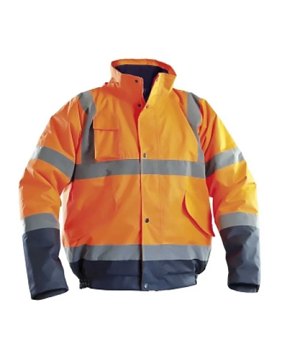 GIUBBINO IMBOTTITO ALTA VISIBILITA' in poliestere oxford 300D con spalmatura PU. Con cappuccio, tasca porta telefono, tasche chiuse con pattina e tasca interna. Conforme alle normative EN 20471 e EN 343.