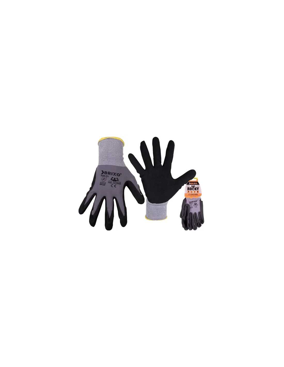 Guanti Brixo Rocky Nylon-Spandex/Nitrile sono caratterizzati da un dorso in nylon/spandex e palmo in nitrile sabbiato. La loro forma ergonomica garantisce massima destrezza e sensibilità tattile, rendendoli ideali per lavorazioni e assemblaggi di piccoli pezzi scivolosi. Perfetti per settori come l'industria automobilistica, la logistica, il giardinaggio e la pittura. Certificati secondo le normative EN388:2016 - 4121X-EN420.