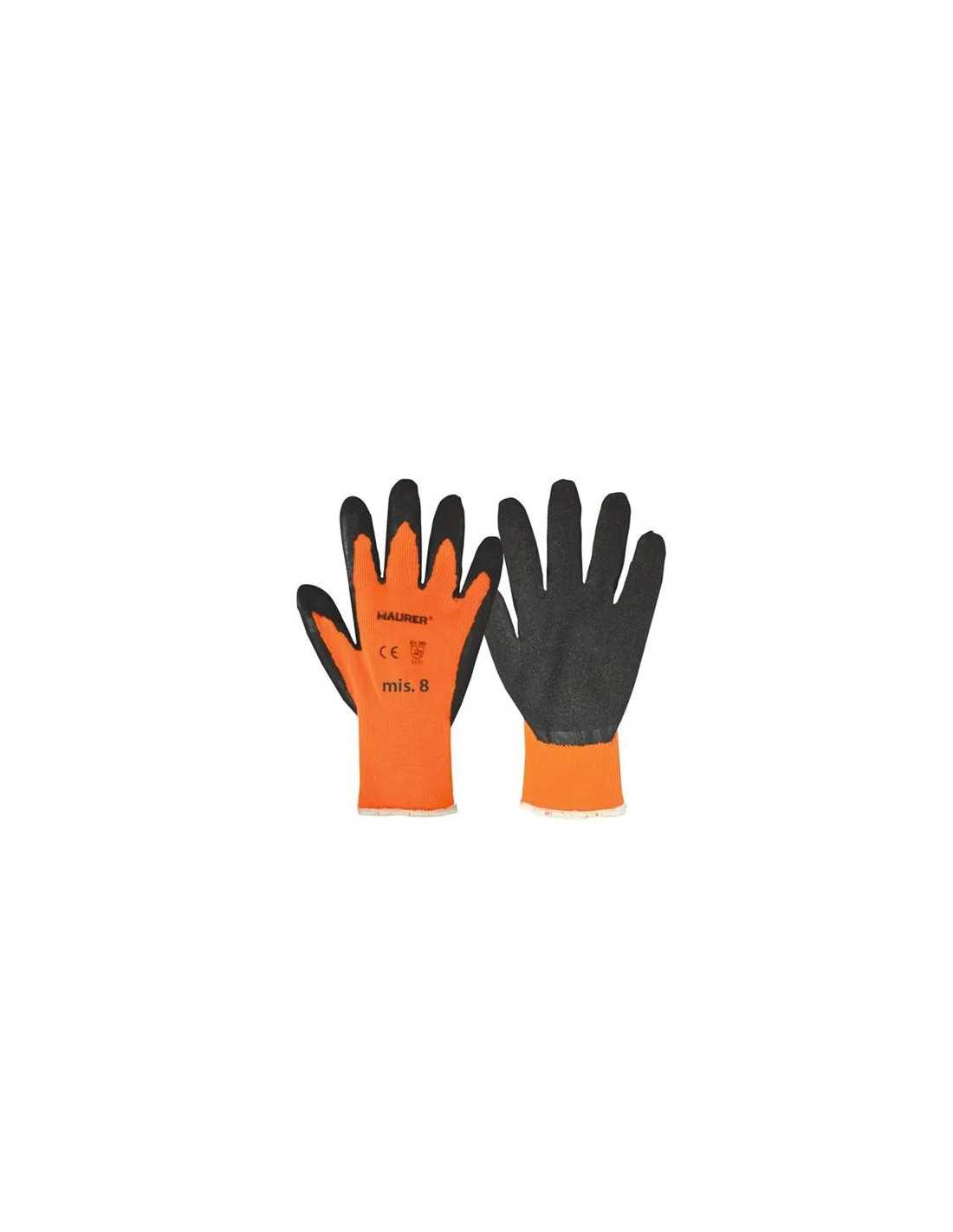 Guanti lavoro acrilico "Winter" TG. 9 MAURER con fodera in filato arancione e rivestimento in lattice nero. Ideali per aree refrigerate, servizi generali, manipolazione alimenti, pesca, edilizia e lavorazioni all'aperto. Certificati CE EN 388 2131.