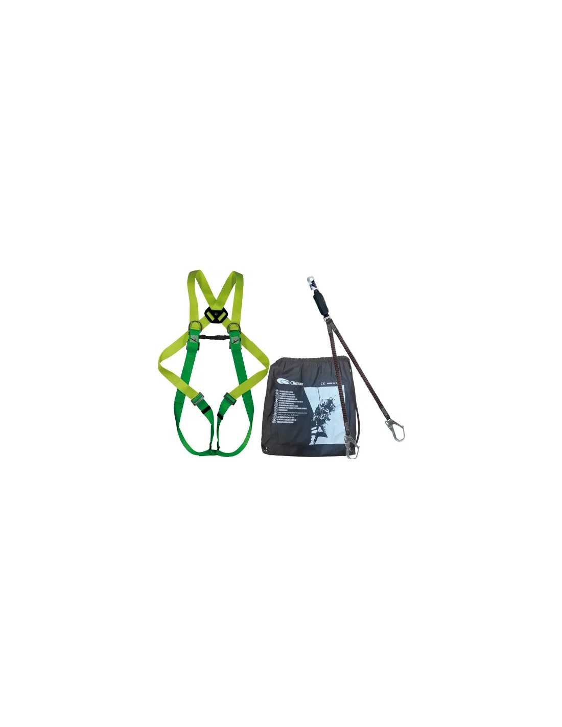 Inoltre, il kit è dotato di un assorbitore di energia che garantisce una protezione aggiuntiva in caso di caduta. Con una lunghezza totale di 1.75 mt e connettori direzionali in acciaio, l'assorbitore di energia assicura un'efficace dissipazione dell'energia cinetica, proteggendo l'operatore da eventuali lesioni.