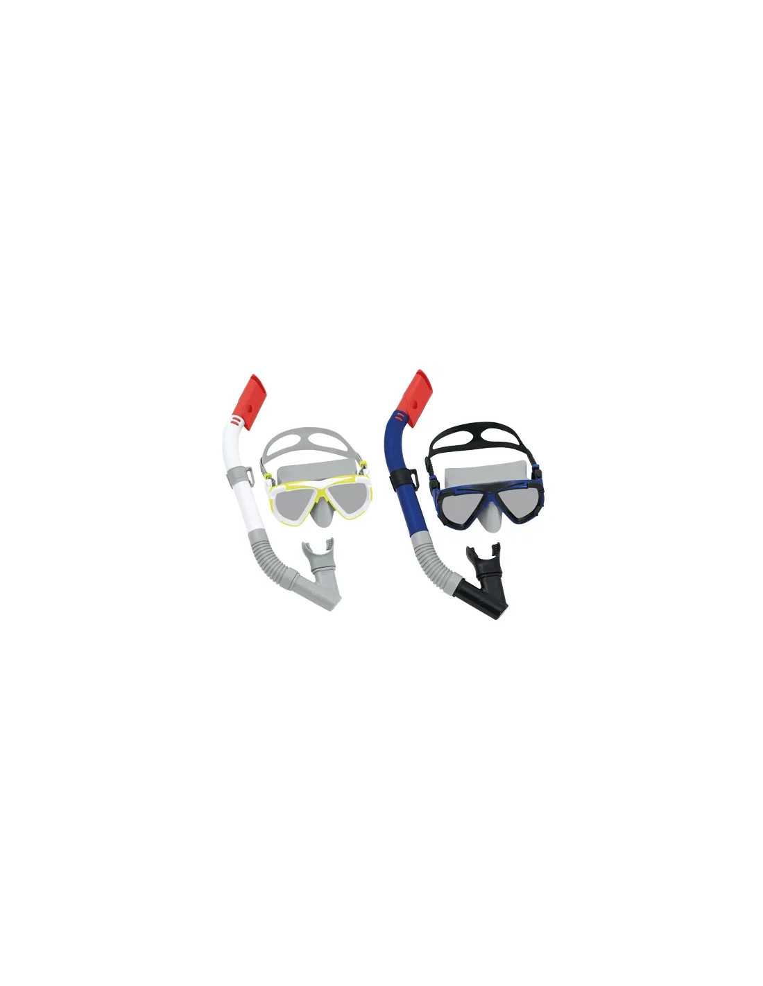 Maschere mare con boccaglio BestWay 24053, ideali per un'esperienza subacquea confortevole e sicura. Le lenti in policarbonato offrono protezione UV e sono specchiate per una visione chiara. Dotate di clip per lo snorkeling, attacco boccaglio in silicone e valvola di spurgo per una facile respirazione. Il cinturino regolabile assicura una vestibilità perfetta. Disponibili in 2 colori assortiti.
