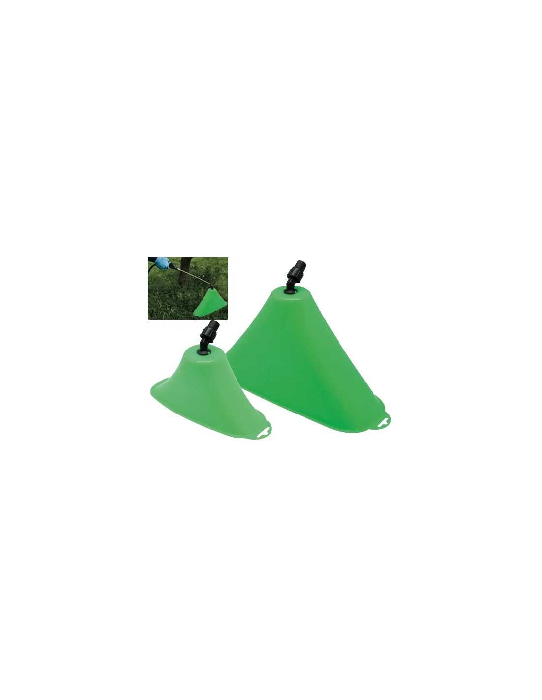 Campane diserbo per lance pompe Iris, accessori per trattamenti di diserbo localizzati sul terreno. Realizzate in polietilene pressostampato, con fissaggio rapido e raccordo di collegamento con prolunga lancia curvato. Dotate di ugello di irrorazione a ventaglio con pressione di 2,5 BAR, portata l/min 0,73 e angolo di spruzzo di 110°.