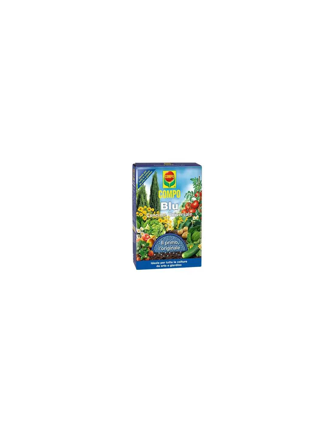 Concime granulare Compo Blu è un composto ricco di macroelementi, mesoelementi e microelementi essenziali per la concimazione di tutte le colture da orto e da giardino. Ideale sia per la concimazione di base che per quella di copertura, per garantire una crescita sana e rigogliosa delle piante. Confezione da 1 Kg.