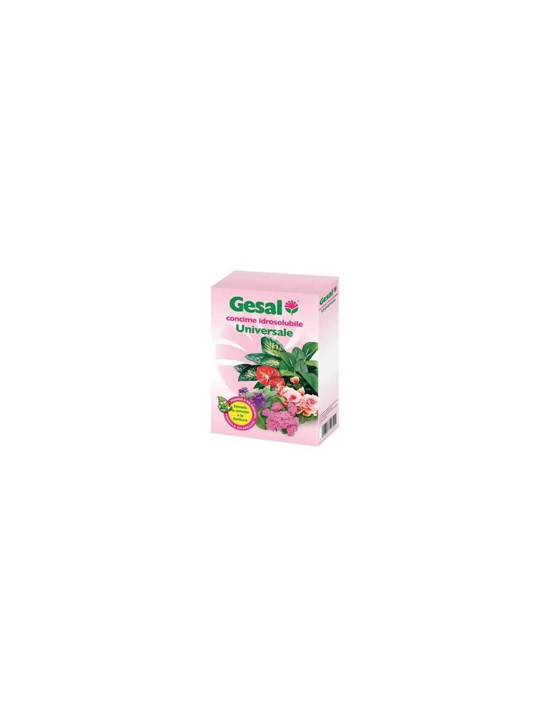 Concime idrosolubile Gesal universale, ideale per ogni tipo di pianta da appartamento, balcone, giardino, prato e orto. Arricchito con azoto, fosforo, potassio e microelementi, facilmente assorbibile dalle radici. Adatto per innaffiatura al terreno, nebulizzazione alle foglie e distribuzione diretta. Confezione da 500 gr.