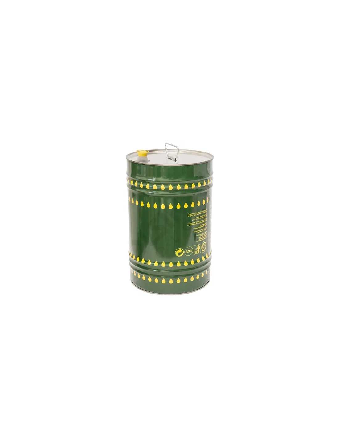 Lattina tonda in banda stagnata per olio di oliva ed olio extra vergine di oliva, con tappo giallo per una chiusura ermetica. Colore verde con gocce gialle.