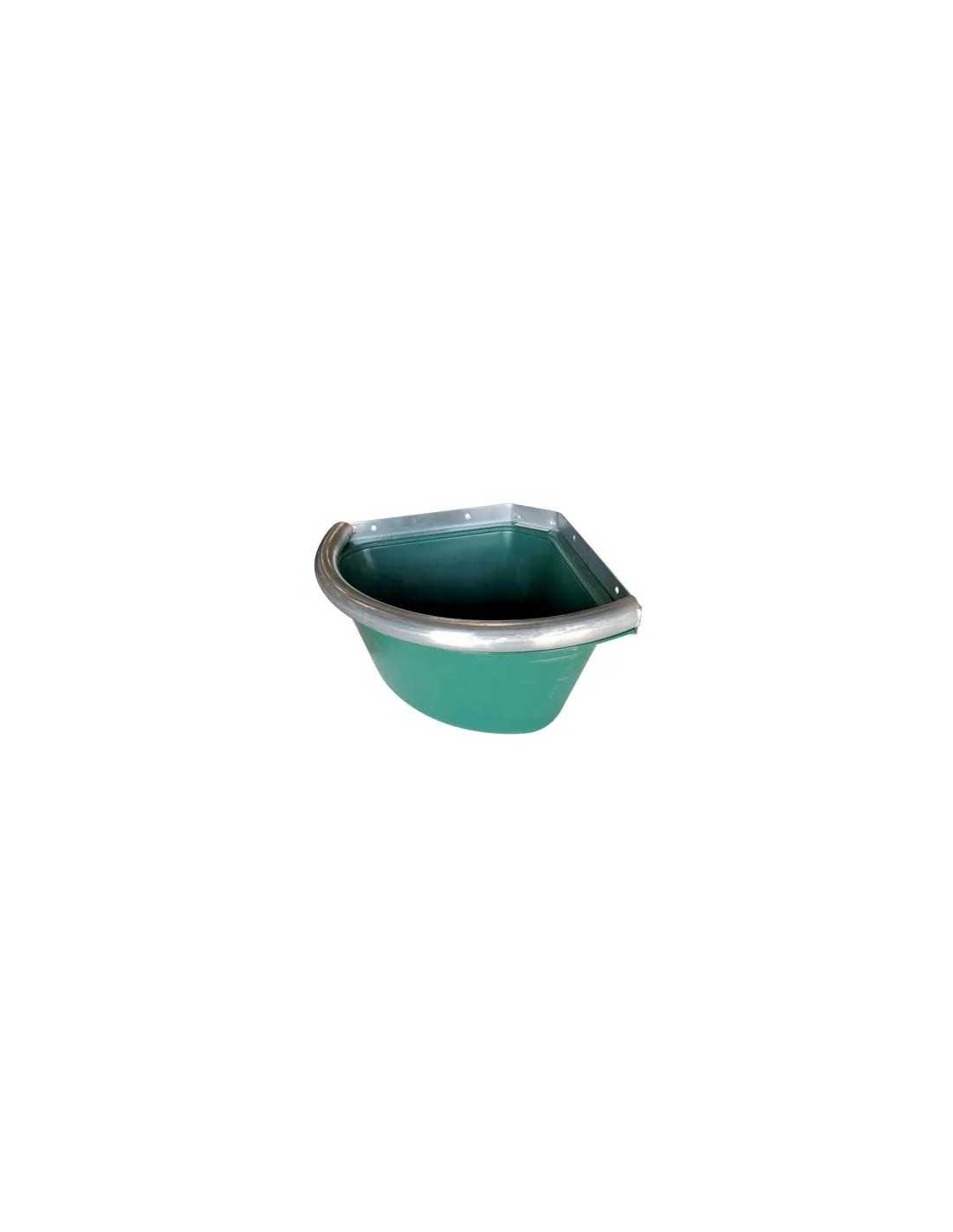 Mangiatoia angolare per cavalli realizzata in plastica resistente con bordo rinforzato in ferro zincato. Dotata di tappo inferiore per facilitare le operazioni di pulizia.