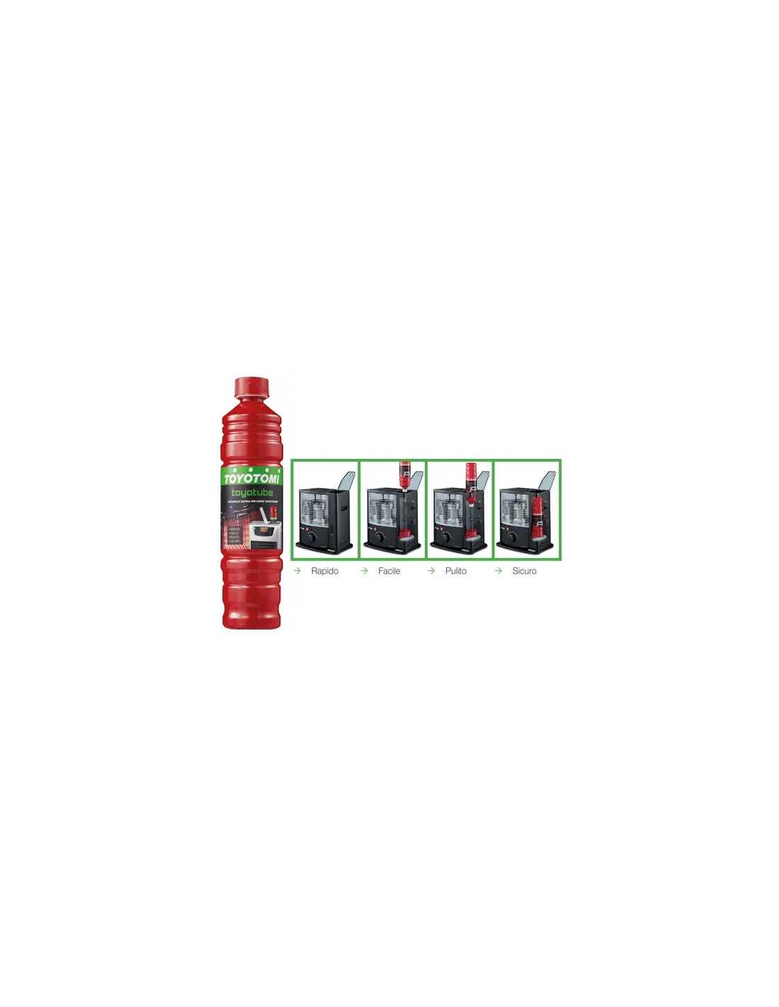 Grazie a Toyotube, ricaricare la tua stufa non è mai stato così semplice. Basta inserire la ricarica nel serbatoio e sei pronto per godere di calore e comfort. Rapido, facile, pulito e soprattutto sicuro, Toyotube è la scelta perfetta per chi cerca praticità e affidabilità. Adatto per stufe combustibili Zibro by Toyotomi, il Combustibile Toyo Tube Ricarica ti offre prestazioni eccellenti e una combustione efficiente per un comfort duraturo.