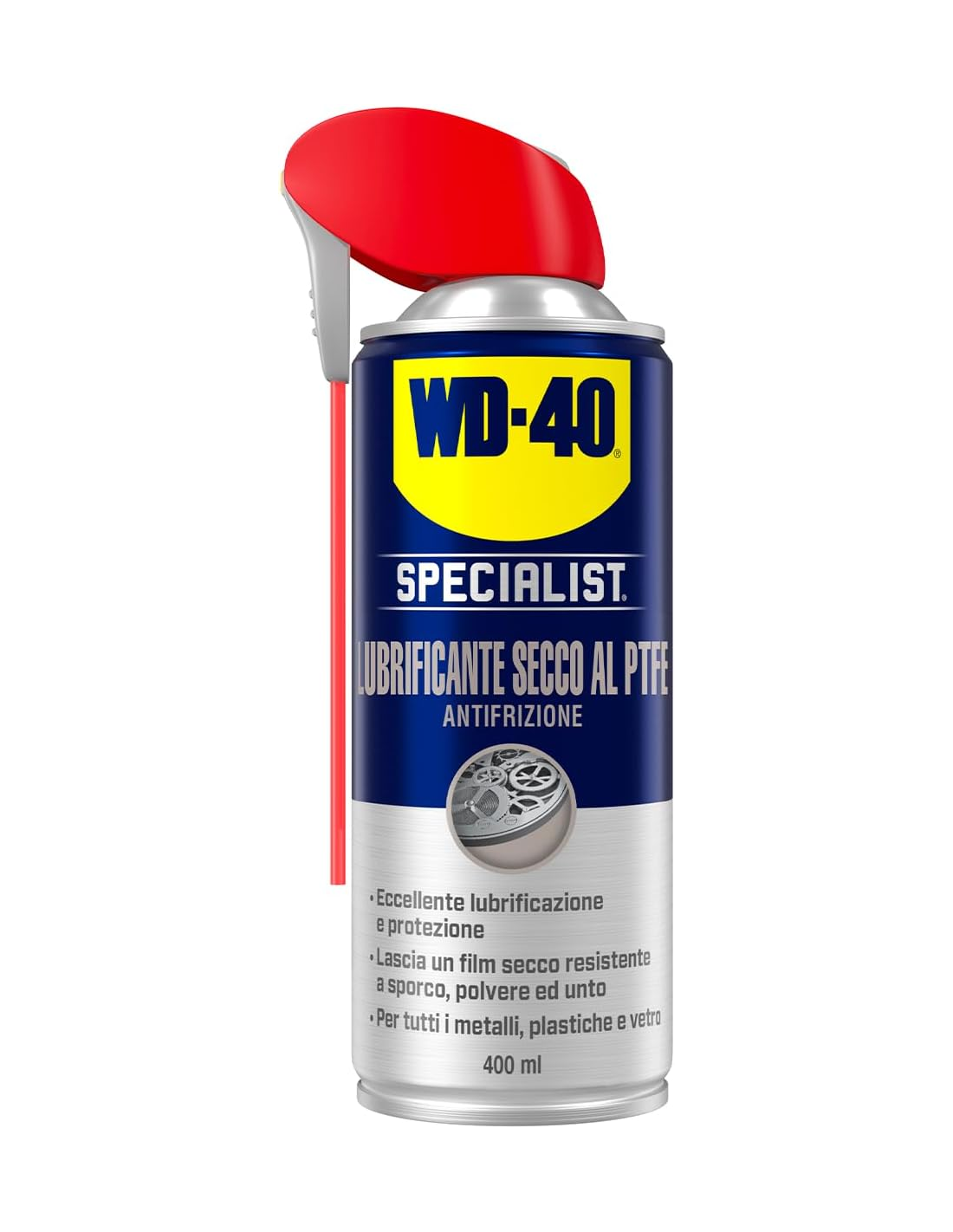 Il lubrificante secco WD-40 con PTFE è una soluzione ad alte prestazioni progettata per garantire una lubrificazione ottimale anche nelle condizioni più complesse. La sua formula avanzata lascia un film protettivo sottile e asciutto, che riduce l’attrito e l’usura senza attirare sporco o polvere, assicurando così un funzionamento silenzioso e duraturo degli elementi meccanici.