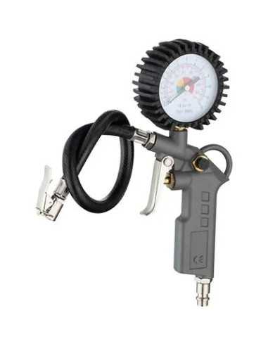 Dotata di manometro integrato, questa pistola offre la possibilità di controllare con precisione la pressione dell'aria durante l'utilizzo. Il pulsante per lo sgonfiaggio rapido consente di regolare facilmente la pressione in eccesso dei pneumatici, garantendo una guida sicura e confortevole.