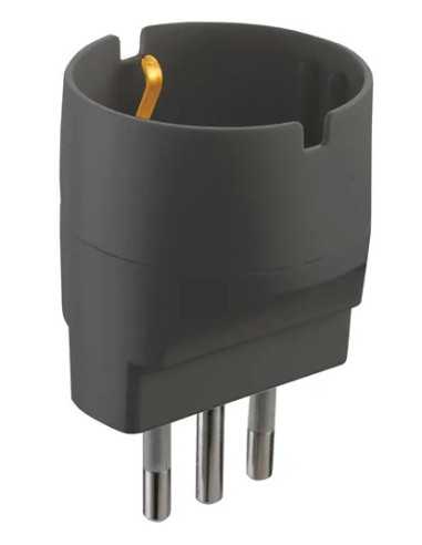 Adattatore semplice 10/16A Schuko grigio, ideale per collegare dispositivi elettrici in modo sicuro e affidabile.