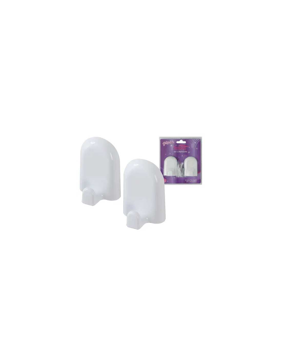 Appendini appenditutto Gioia, set di 2 appendini in ABS bianco con doppio sistema di fissaggio tramite tasselli o biadesivo.