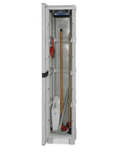 Armadio in resina con un'anta battente, ideale per riporre scope e altri oggetti domestici. Un'ottima soluzione per mantenere in ordine e organizzati gli ambienti di casa.