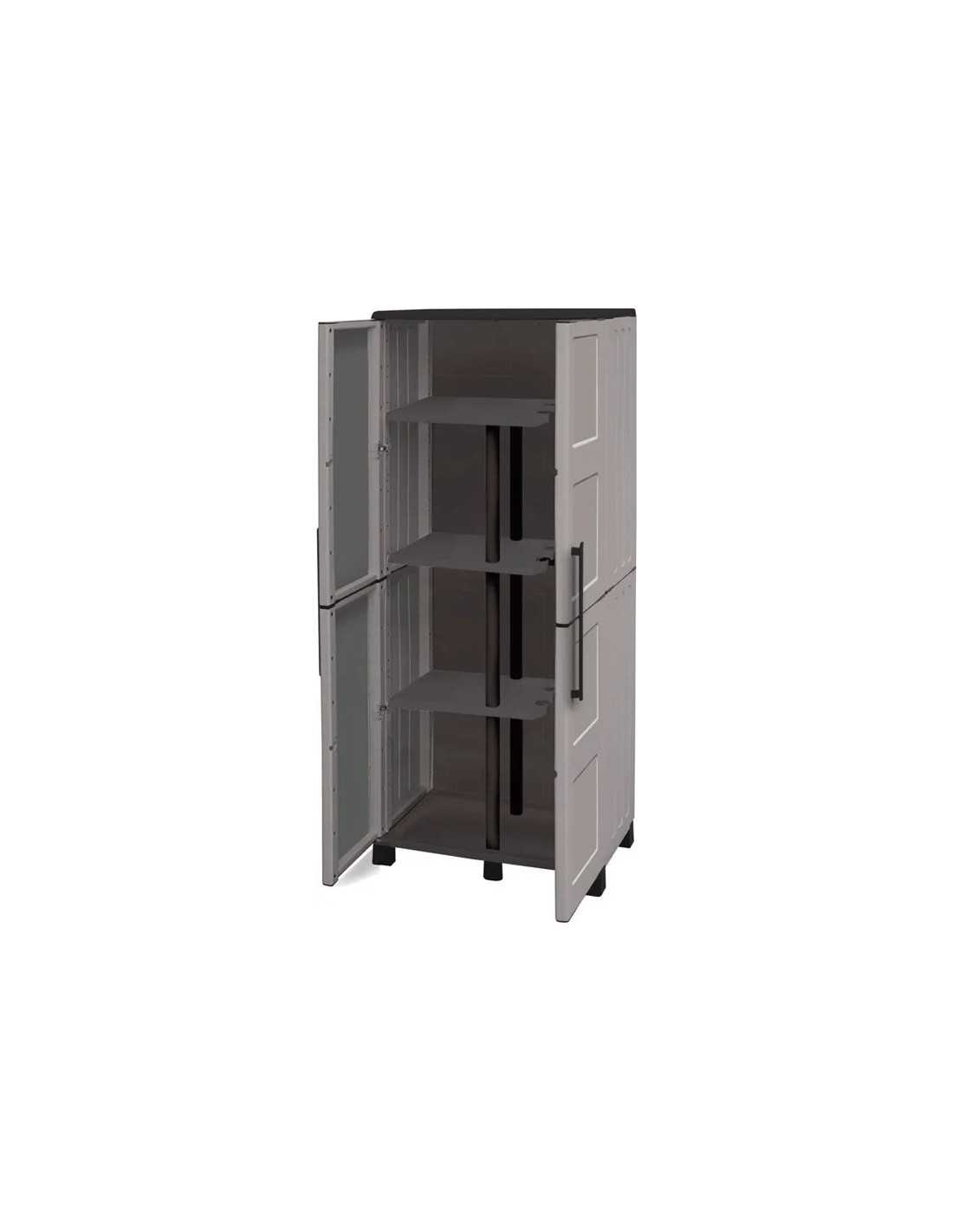 Armadio in resina Maurer Portascope, ideale per riporre scope e altri attrezzi da giardino. Realizzato in materiale eco sostenibile e resistente all'usura, dotato di porte e scaffali interni per un'organizzazione ottimale degli oggetti. Conforme alla normativa REACH.