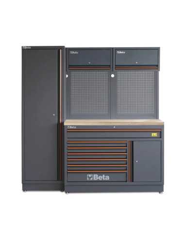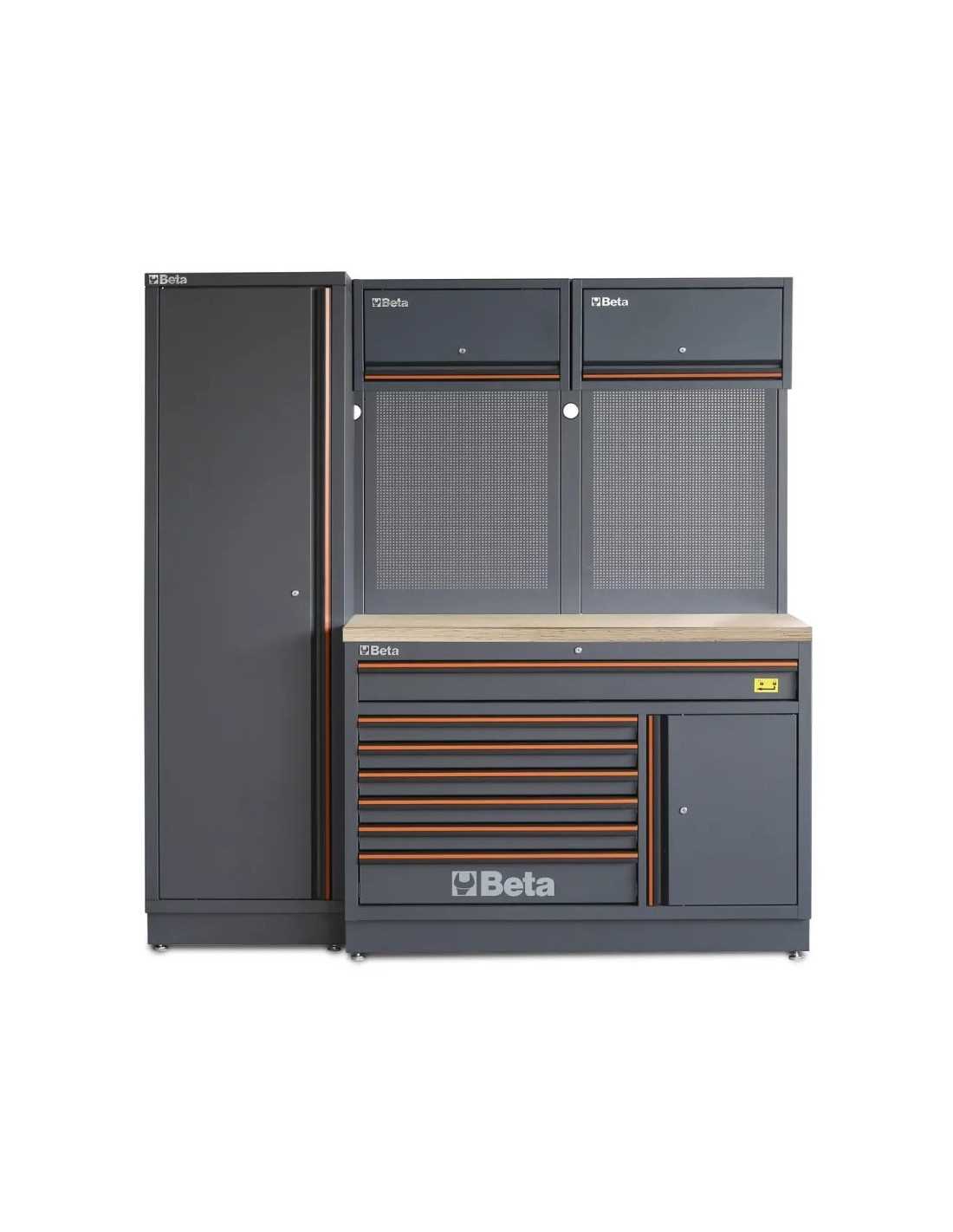 Benvenuti nella nuova collezione ARREDI PRO E - 2MT WOOD 1 MOD. + ARMADIO di Beta Utensili. Questo set unico e innovativo combina design moderno con funzionalità versatile, offrendo soluzioni di arredamento ideali per ogni ambiente lavorativo.