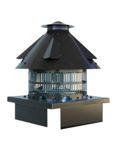 Aspiratore Elettrico per Canna Fumaria adatto anche per estrazioni di fumi caldi in modo continuo. Realizzato in lamiera preverniciata, con rete anti volatile e girante autopulente. Conforme alle normative di settore, dotato di motore monofase asincrono autoventilante e cavi resistenti alle alte temperature. Morsetteria esterna con interruttore e selettore di velocità. Base adattabile da 320x320 a 420x420 mm, colore testa di moro.