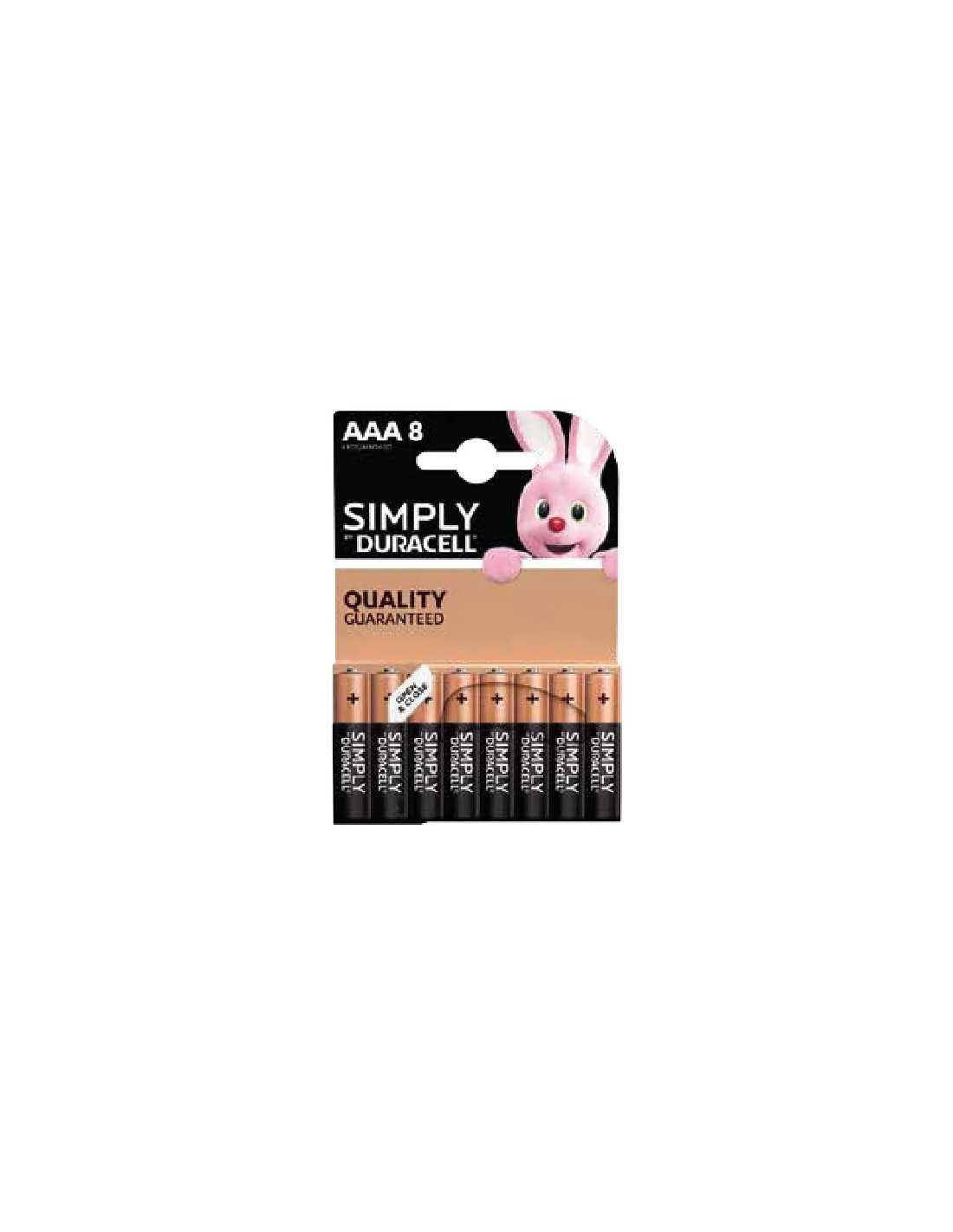 Batterie Duracell Alkaline Simply AAA MN2400 in confezione da 8 pezzi, ideali per dispositivi a basso consumo come radio, telecomandi e orologi. Garantiscono la qualità Duracell a un prezzo conveniente.