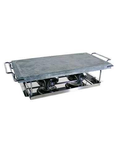 Bistecchiera con fornelletto in pietra naturale, ideale per cotture uniformi e gustose. Dotata di fornello a doppia fiamma per una cottura rapida e perfetta.