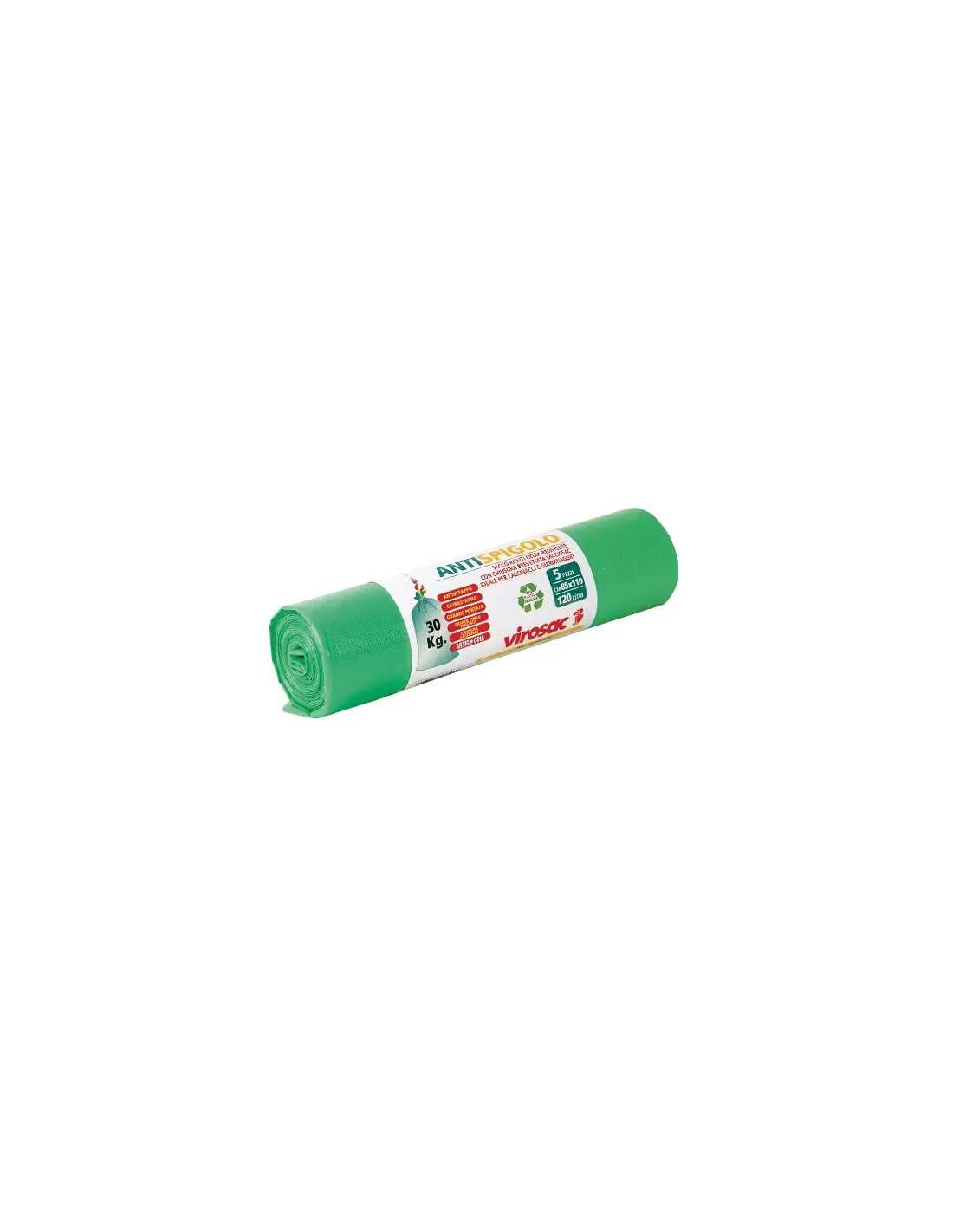 Con dimensioni generose di 85x110 cm e una capacità di 120 lt, queste buste antispiolo sono l'ideale per contenere rifiuti di vario genere in modo sicuro ed efficiente. La confezione da 5 pezzi assicura di avere sempre a disposizione un buon numero di buste per le proprie esigenze quotidiane.