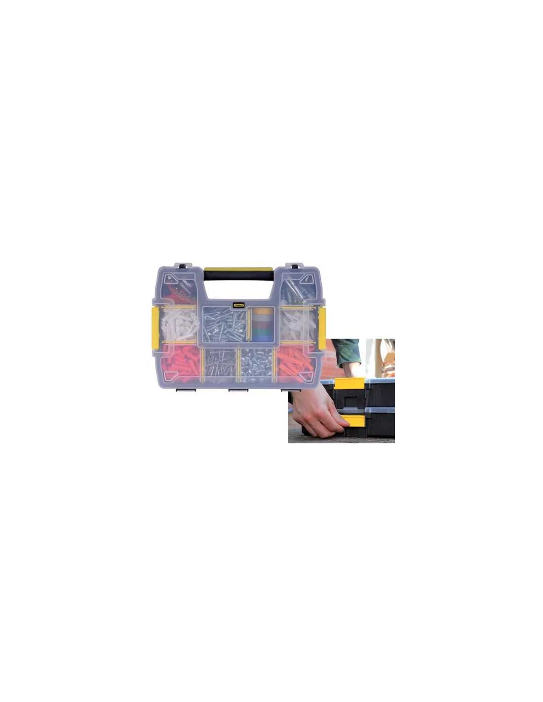CASSETTE ORGANIZER STANLEY è l'organizer perfetto per tenere in ordine utensili e minuterie. Realizzato in resistente polipropilene, dispone di divisori interni che permettono una suddivisione precisa dei vari oggetti. Le cerniere laterali consentono di impilare fino a tre unità senza problemi, mentre la configurazione del coperchio impedisce lo spostamento del contenuto tra uno scomparto e l'altro.