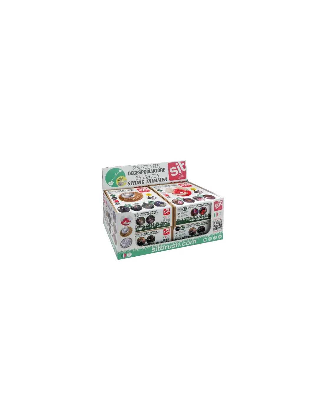 Espositore contenente 4 spazzole per decespugliatori Sit 0355, di cui 2 in acciaio e 2 in nylon.