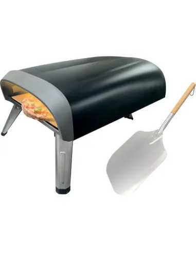 Forno pizza delizioso DOMUS è l'ideale per preparare pizza croccante e gustosa in modo semplice e veloce. Con alimentazione a gas, potente bruciatore in acciaio inossidabile e accensione elettronica, è dotato di termometro e pala pizza per una cottura perfetta ogni volta. La struttura resistente in acciaio verniciato e i piedi pieghevoli lo rendono pratico e funzionale in ogni ambiente.