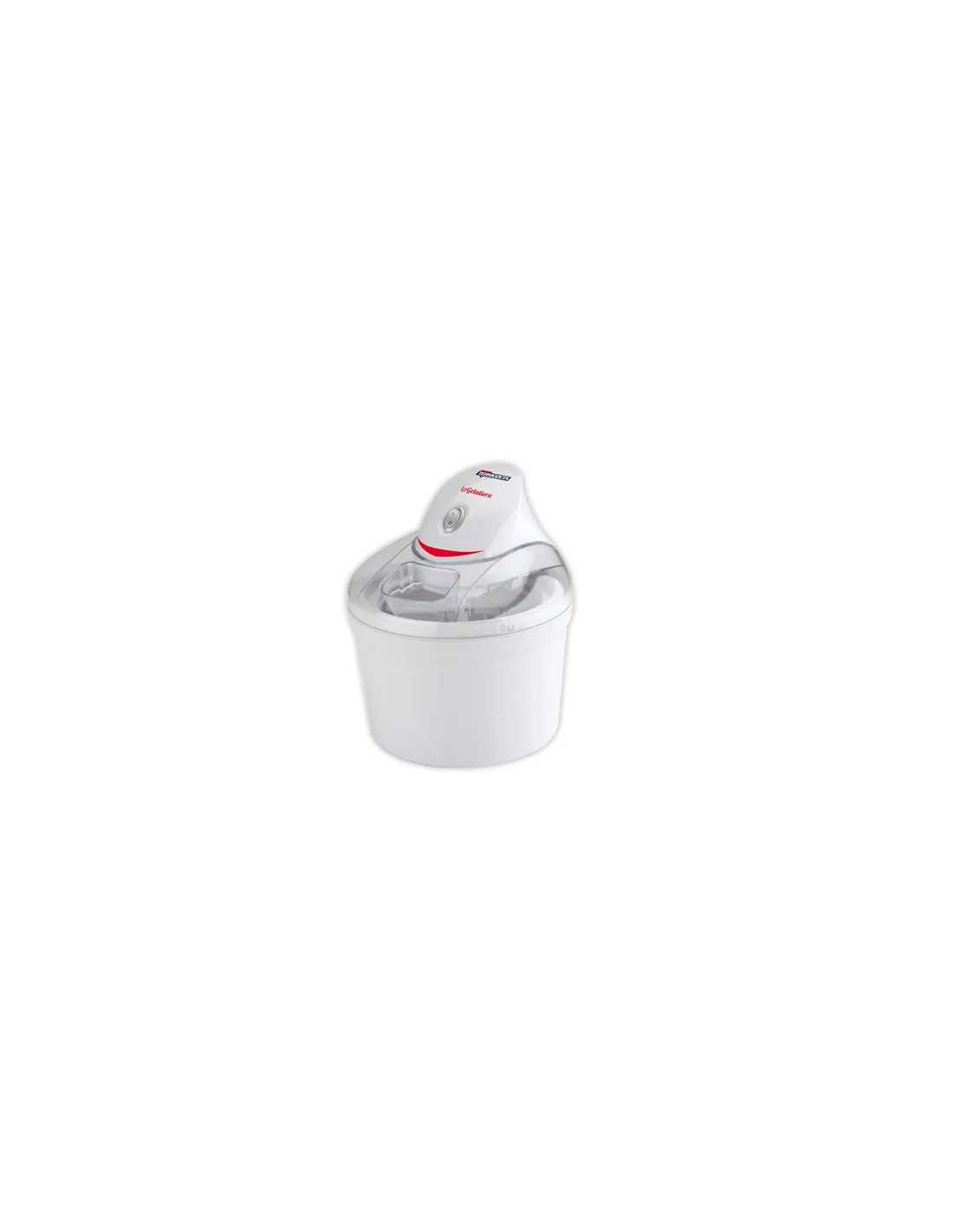 Macchina per il gelato con sistema ad accumulo, ideale per la produzione di gelati e sorbetti. Dotata di motore elettrico per il miscelatore, cestello da 1,2 L.t. e coperchio trasparente per facilitare l'inserimento degli ingredienti. Facile da pulire grazie alla possibilità di smontare motore, pala e coperchio. Dimensioni compatte Ø19xH22 cm.