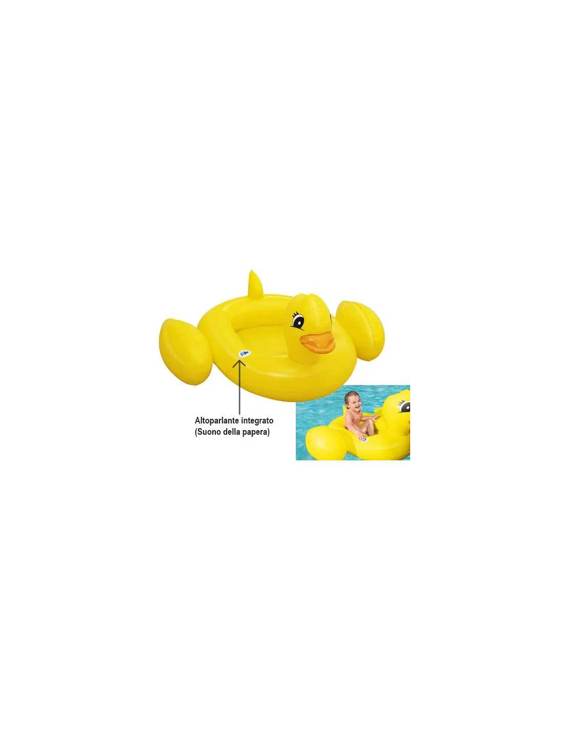 Gonfiabile Papera Speaker BestWay 34151, ideale per divertirsi in piscina o al mare. Realizzato in resistente PVC con 2 camere d'aria per una maggiore sicurezza. Goditi il suono della papera grazie all'altoparlante integrato. Dimensioni generose di 102x99 cm per un comfort ottimale.
