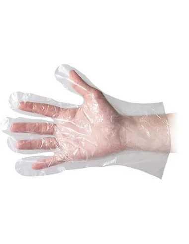 Guanti monouso, ambidestri e privi di polvere, con superficie leggermente goffrata. Spessore di 0,012 mm e colore trasparente. Idonei al contatto con alimenti e dispositivi di protezione individuale Cat. 1.