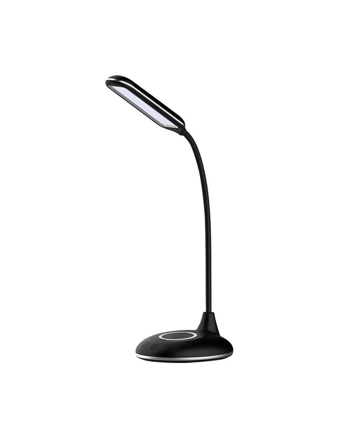 Lampada da tavolo multifunzione a LED con stazione di ricarica wireless integrata per smartphone, corpo in ABS e intensità luminosa fino a 800 lux. Dimmerabile e con 3 temperature di colore selezionabili, alimentazione tramite cavo Micro USB/USB o caricatore USB rapido incluso.