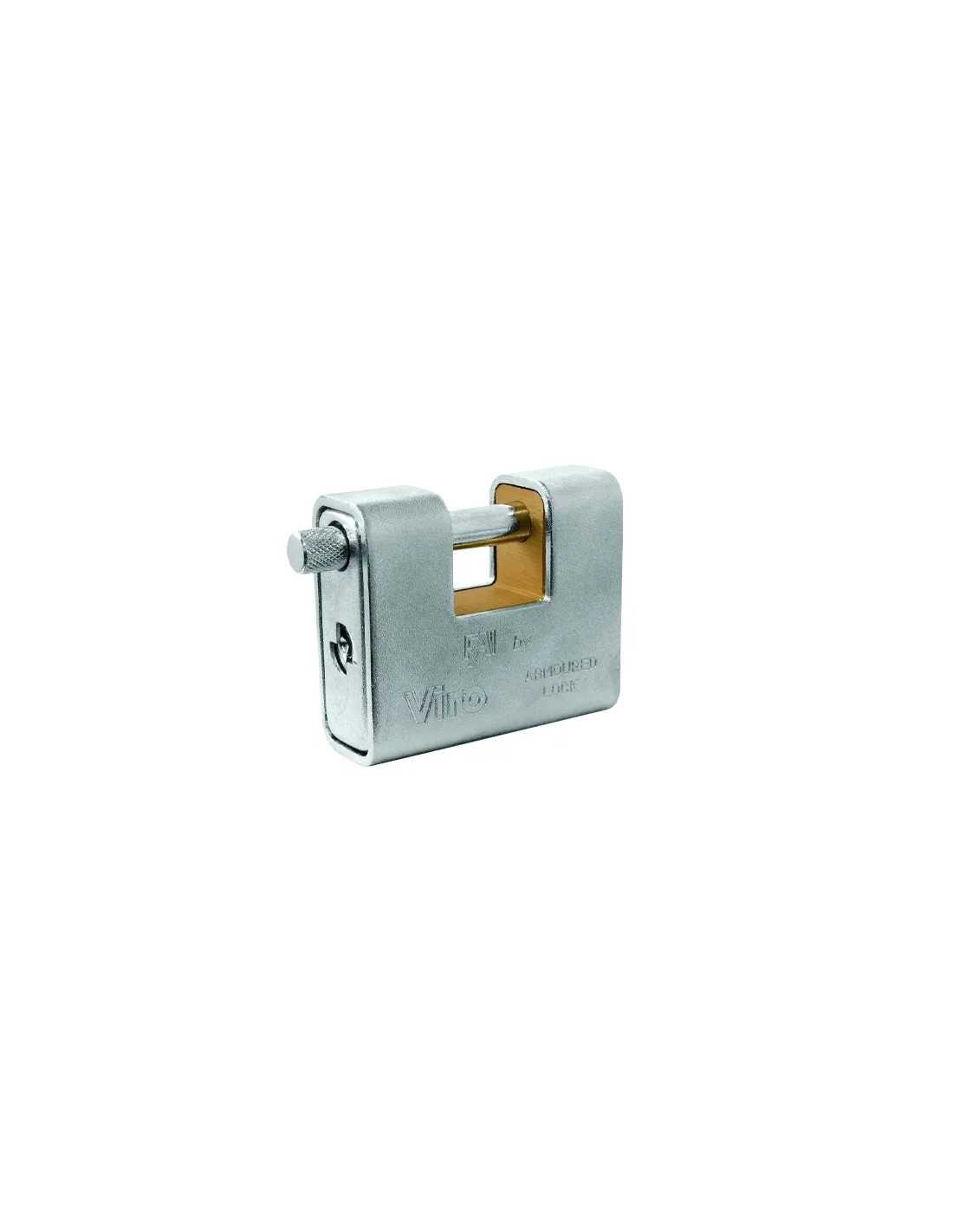 Lucchetti corazzati Viro Fai ideali per garantire massima sicurezza e resistenza. Realizzati con corpo in ottone massiccio ricoperto da una corazza di acciaio cementato e temprato, asta di chiusura rotante in acciaio cementato e temprato, e mostrina antistrappo in acciaio. Include 3 chiavi in dotazione per una maggiore tranquillità.