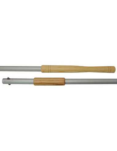 Questo manico è progettato con una doppia impugnatura in legno, che lo rende comodo da utilizzare anche con temperature elevate. La parte terminale fissa assicura una presa salda e sicura, mentre la parte centrale scorrevole consente di regolare la lunghezza in base alle esigenze di utilizzo.