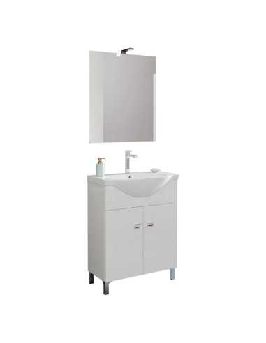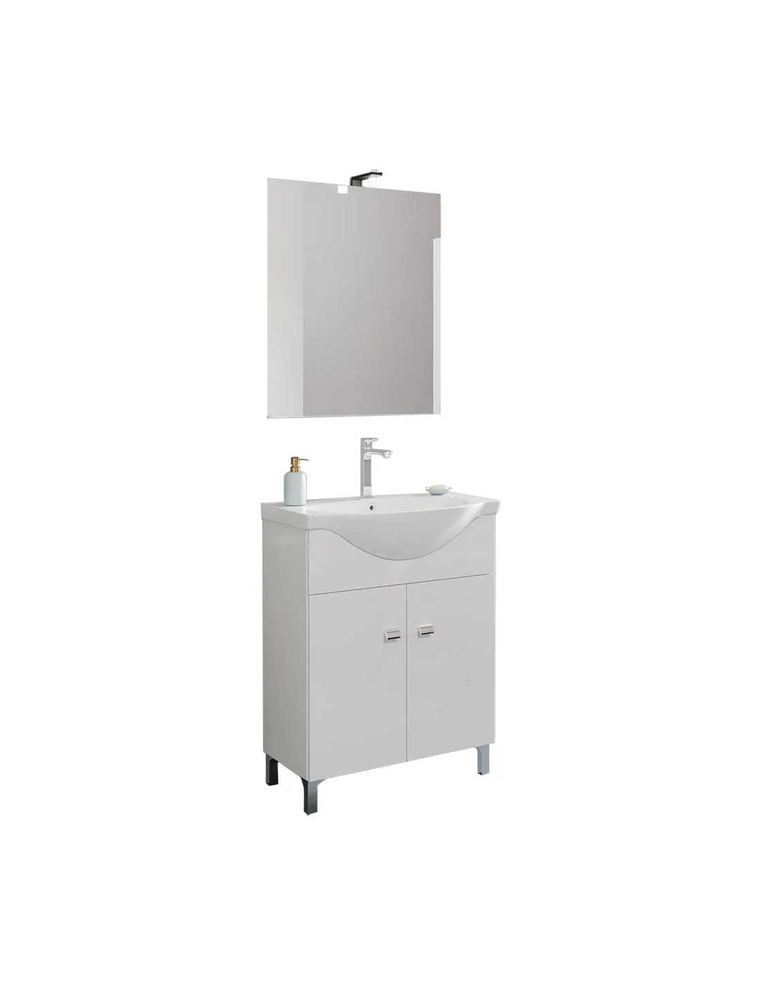 Il Mobile Bagno 'SMART 65' è un elegante complemento d'arredo per il tuo bagno, con base composta da due ante in MDF rivestito bianco e lavabo in ceramica lucida. Completo di specchio con illuminazione a led e piedini regolabili cromati, questo mobile bagno unisce funzionalità e design moderno.