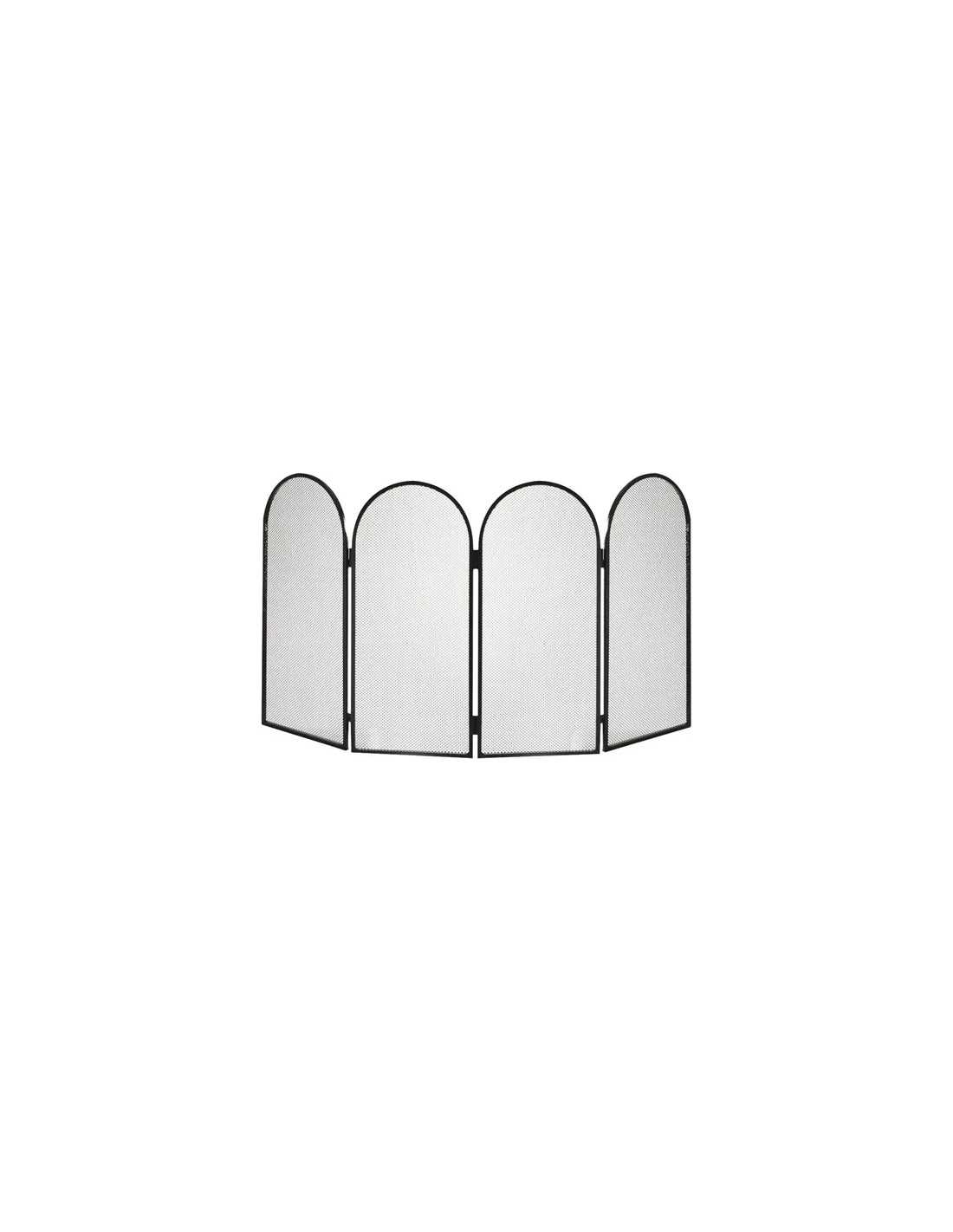 PARASCINTILLE FERRO BATTUTO: elegante parascintille con decoro ad archi, realizzato in ferro battuto nero opaco lavorato a mano per un tocco artigianale unico.