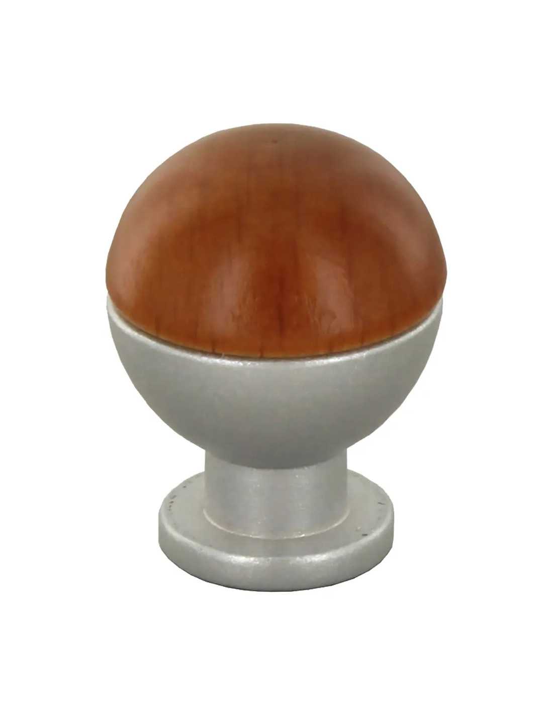 Pomolo in legno e ottone sferico con basetta in ottone nichel satinato. Completo di viti. Aggiungi un tocco di stile e eleganza ai tuoi mobili con questo pomolo dal design raffinato e moderno. Perfetto per armadi, cassetti e molto altro.