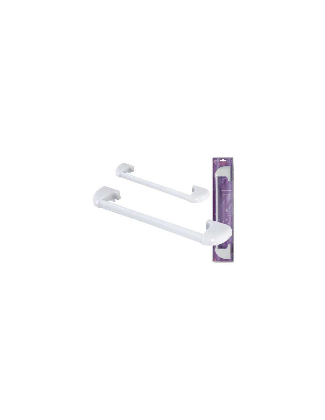 Portasciugamani Gioia è un pratico supporto per i tuoi asciugamani, realizzato in ABS bianco e dotato di doppio sistema di fissaggio a tasselli o biadesivo per una maggiore stabilità. Ideale per il bagno di casa o l'ufficio.