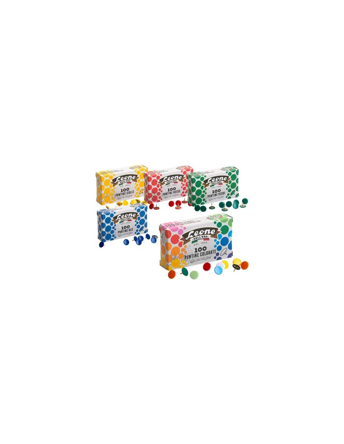 Le puntine per disegno CF.100 sono l'accessorio perfetto per ogni studio artistico o ufficio creativo. Ogni confezione contiene 100 puntine con testa plastificata colorata, ideali per fissare disegni, schizzi, o documenti importanti in modo pratico e colorato. La confezione da 10 scatoline di cartone garantisce una scorta duratura e sempre a portata di mano.