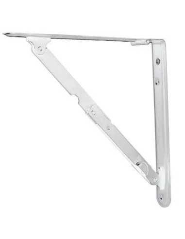 Reggimensola pieghevole in acciaio verniciato, ideale per sostenere mensole e ripiani con una portata massima di 50 kg. Pratica e resistente, si adatta a diverse esigenze di arredamento.