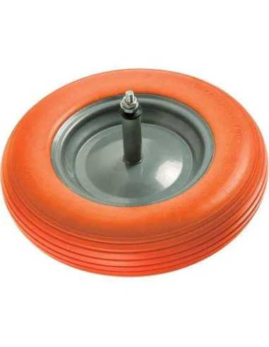 Ruota PU antiforo per carriola di alta qualità, resistente e durevole nel tempo. Realizzata in poliuretano antiforatura con disco in metallo verniciato. Ideale per un trasporto sicuro e affidabile.