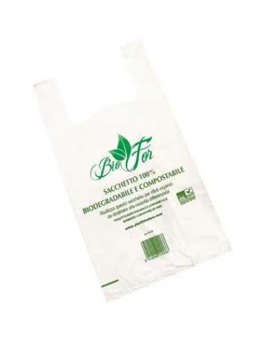 Sacco Spesa Bio Shopper realizzato in materiale compostabile, ideale per la raccolta dei rifiuti organici. Completamente biodegradabile e compostabile a norma UNI EN 13432, con materie prime provenienti da fonti rinnovabili e non geneticamente modificate.