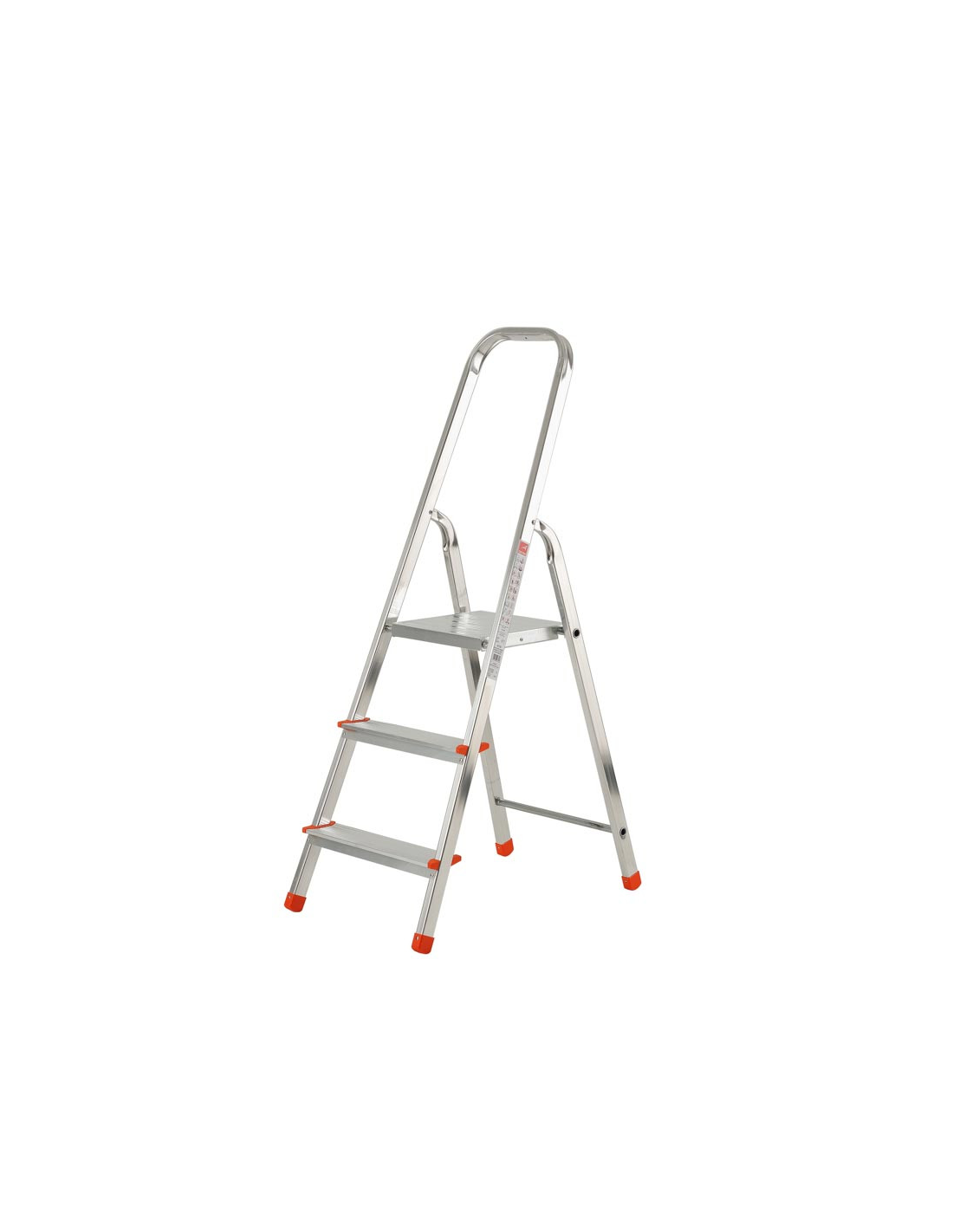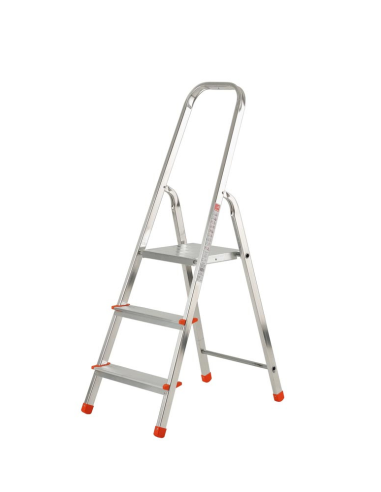 Scala domestica in alluminio estruso, leggera e resistente, ideale per uso interno. Disponibile da 3 a 8 gradini, con ampia pedana in acciaio zincato antiscivolo. Gradini con pedata da 80 mm per massimo comfort e stabilità durante l’uso. Dotata di tappi in gomma isolanti e antiscivolo per una presa sicura al suolo. Perfetta per lavori domestici, archiviazione, scaffalature o manutenzioni quotidiane.