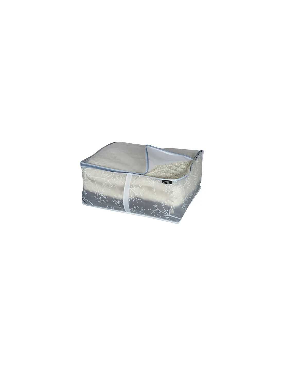 Scatola in vinile porta coperte è l'accessorio perfetto per organizzare e proteggere coperte, cuscini e altri tessili in modo pratico e funzionale. Realizzata in PEVA biodegradabile, questa scatola large è caratterizzata da un decoro semitrasparente che aggiunge un tocco di eleganza all'ambiente in cui viene collocata.