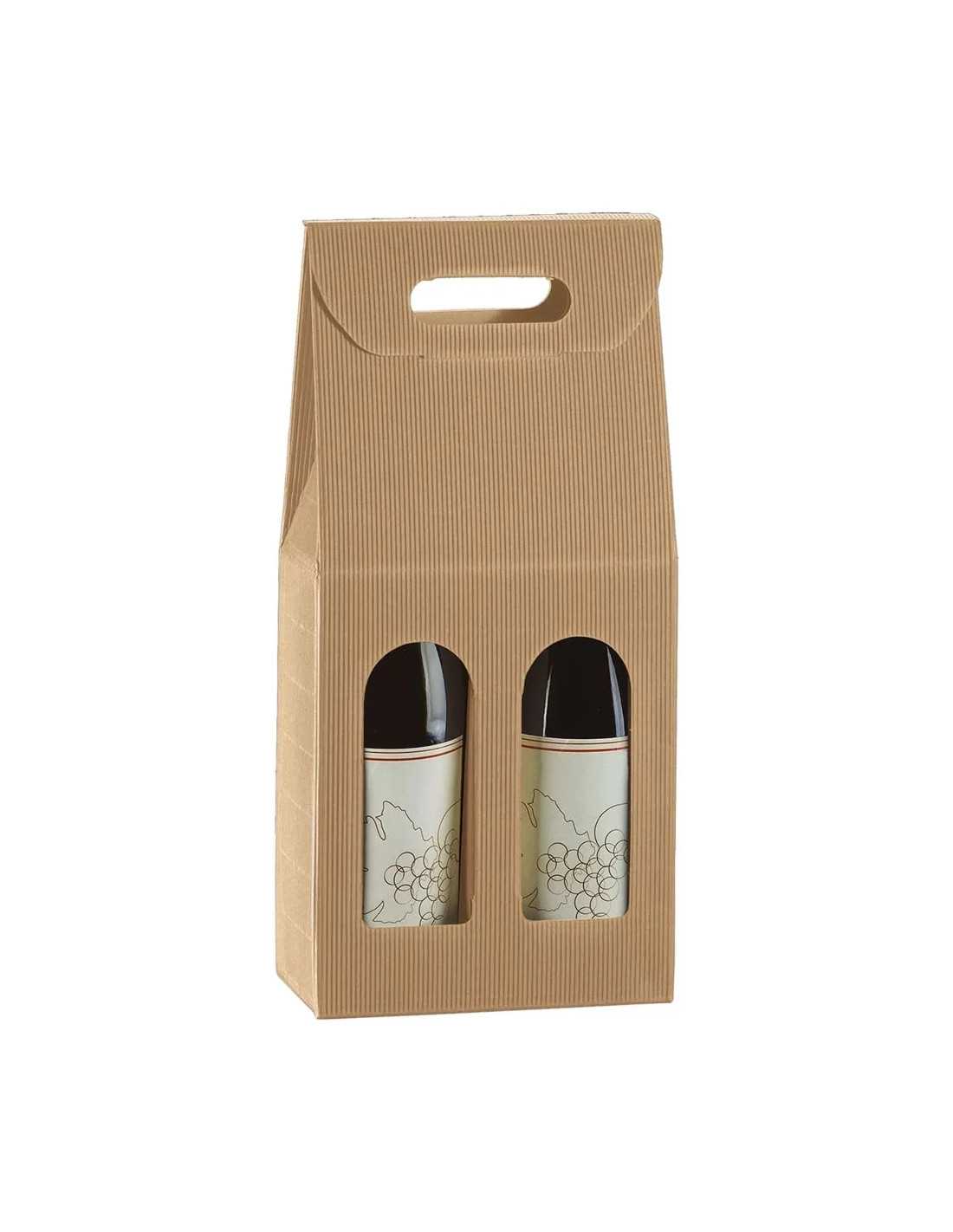 Scatola portabottiglie in cartone per 2 bottiglie, ideale per confezionare regali. Realizzata in fustellato cannete', robusta e pratica da trasportare grazie alla maniglia superiore. La finestra laterale facilita l'individuazione del prodotto.
