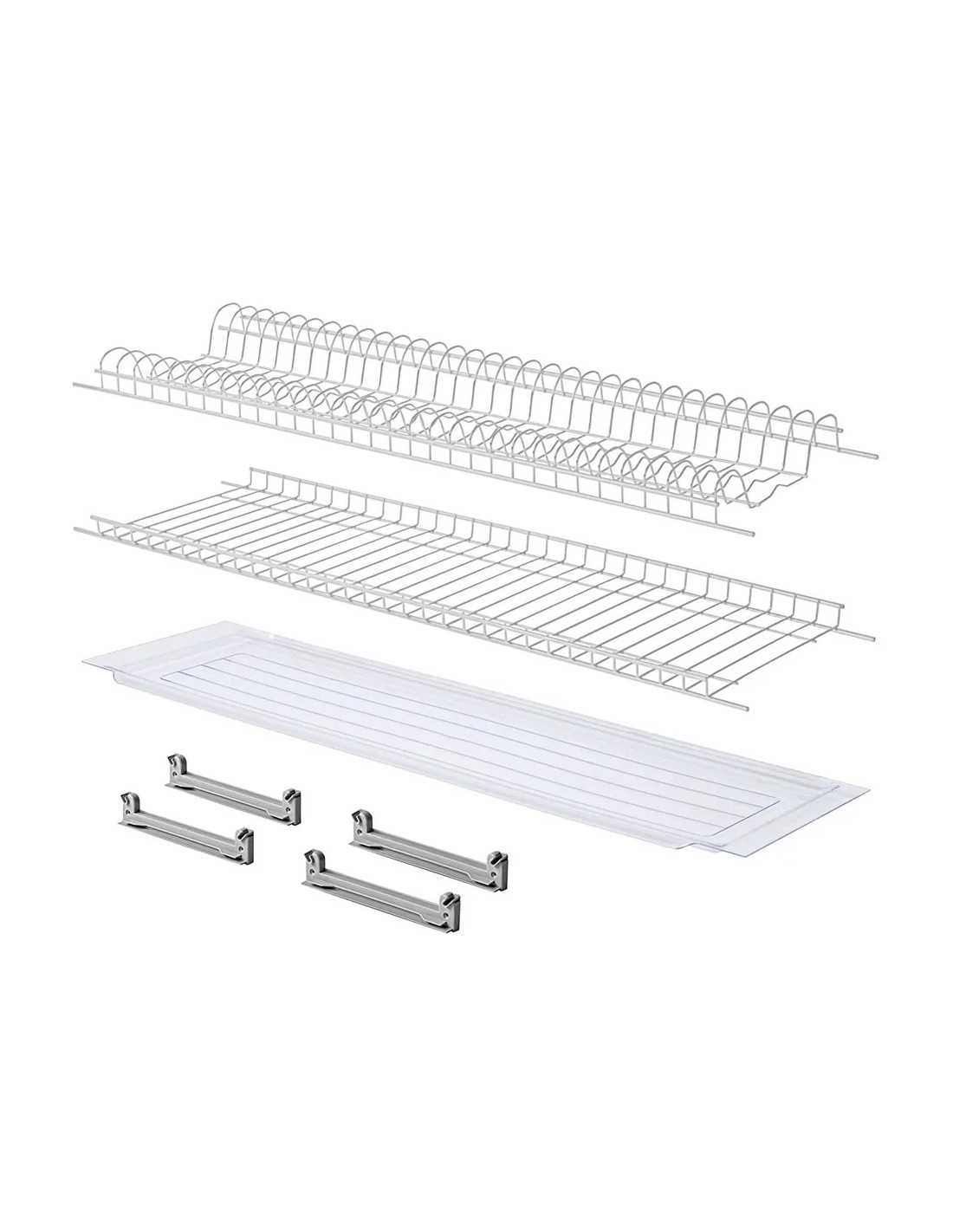 SCOLAPIATTI PER PENSILE IN METALLO VERNICIATO è l'accessorio ideale per ottimizzare lo spazio in cucina. Completo di supporti laterali in plastica per un facile fissaggio a fianco del mobile, questo scolapiatti grigio è perfetto per sostituire i vecchi modelli da incasso. Con vaschetta inclusa.