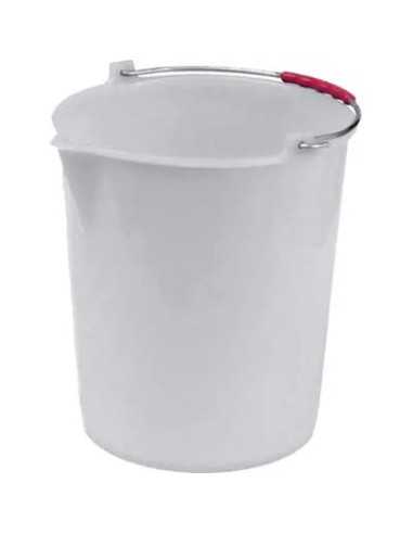 Un pratico secchio pesante in plastica per uso alimentare, con comodo becco e resistente manico in metallo. Il colore bianco lo rende adatto a qualsiasi ambiente.